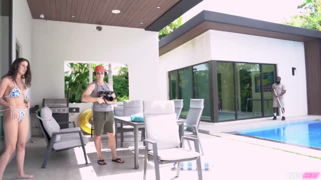 In the first part of this two-section sex fest with cheating wife Ellie Shou, she seduced her personal trainer and made him cum on her unshaven snatch. In part two, Ellie gets intimate with the flower delivery man, Brad Knight. Ellie Shou takes Brad's big dick down in her throat while her trainer Matt watches from his hiding spot in the closet. Ellie Shou lays flat down on the bed so in missionary so Brad can ram and rail her cunt, then she asks him to fuck her up her furry asshole. Ellie Shou rips off the flowers her poor cuckold husband had Brad deliver to her door while she has an anal orgasm. Brad gapes the bubble butt of Ellie Shou, and the tiny tramp licks her juices from his massive cock for ass-to-mouth ATM action. When Matt falls out on the floor from his hiding spot, Ellie Shou orders him to join the action and give her the double penetration she has been lusting for. Brad and Matt impale the submissive small fry in her hairy holes, and she loves being double penetrated. After cumming from DP, Ellie Shou gives a double blowjob before begging for the men to shower her in sperm. Matt cums on her bush, and Brad gives her a creampie. Just then, Ellie Shou's hapless husband comes home and sees the aftermath of her hardcore threesome. The poor cuckold cries as he agrees to lie on the floor and microwave a pizza for dinner.
