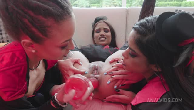 Lily's husband is being treated poorly by his boss so Lily sets up a girls getaway as an excuse to confront the boss. After he arrives he proposes sex as a means to end his behavior which she scoffs at. He asks to try on some lingerie which she reluctantly agrees to and he asks for a better set. After checking her out, he says she'll do great and guides her through the steps that lead to sex.