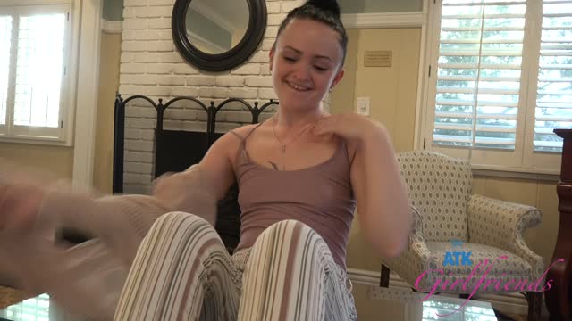 You open the door to a new babe Eva Nyx. She is all smiles, and all sexy. You lead her to the room and start right away. You eat her pussy and make her cum before she sucks your cock. You bend her over and fuck her until she cums again. You move to the bed and she rides your cock. She has a smoke, and strokes your cock with her feet until you cum on them.